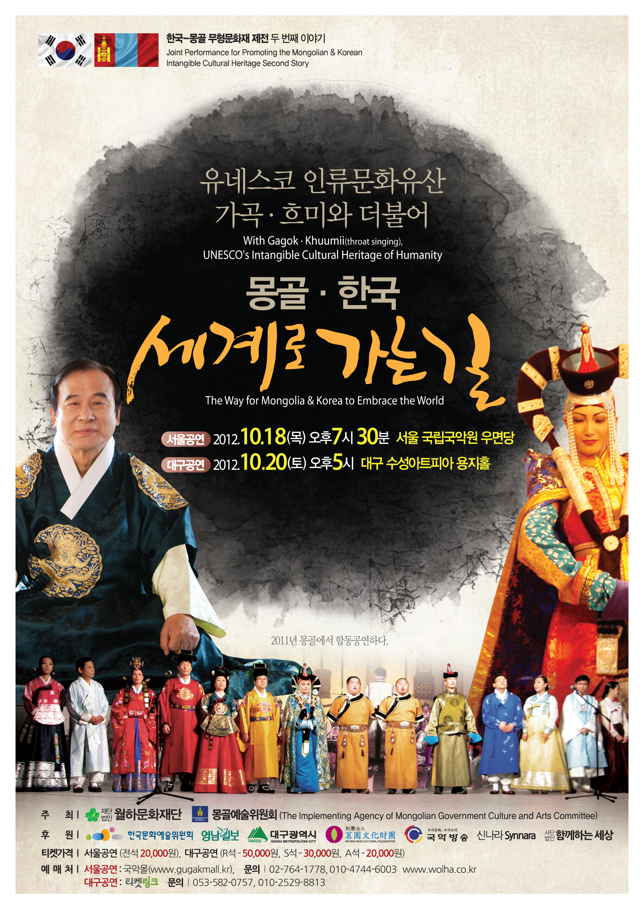 제24회 월하문화재단 정기연주회 - 한국 몽골 세계로 가는길 서울공연 (#1. 2) 최고관리자 0 3077 2019.06.24 16:51 https://youtu.be/Zo3B2S6VsGA + 4601 https://youtu.be/hs1z1I-1lnU + 4330 ◎ 서울공연2012년 10월 18일(목) 오후 7시 30분 국립국악원 우면당사회 ? 해설 _ 김영운 01. 김영운 교수님 해설 02. 몽골팀 공연_ 마두금 연주 ◆ 마두금 독주곡 “우렌 보르 (UULEN BOR)” 작곡가_TS. 수흐 바타르 (TS. SUKHBAATAR) 독주가_L. 이데르바트 (L. IDERBAT)-몽골의 대통령상 수상자(연주시간_ 3:00)